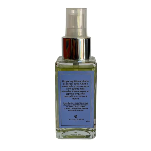 Ingredientes: álcool de cereais, óleos essenciais vibracionais de Lavanda, Litsea Cubeba, Guaiaco, Laranja Doce, Néroli e tintura de Lavanda.
