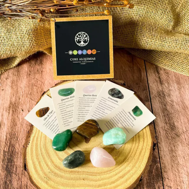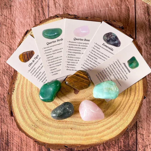 O seu kit de cristais vem acompanhado de cartas explicando a energia de cada pedra.