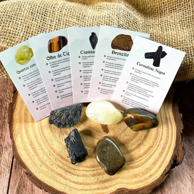 Kit com 5 cristais para Proteção contra Inveja e Mau Olhado + Cartas explicativas