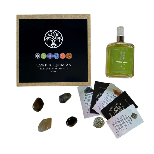 Ritual para atração de Prosperidade composto por Elixir Vibracional , Kit de Cristais e Cards explicativos de cada cristal.