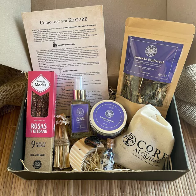 O KIT RITUAIS PARA CONEXÃO ESPIRITUAL é composto por 8 produtos que foram pensados para serem usados em vários rituais de autocuidado energético.