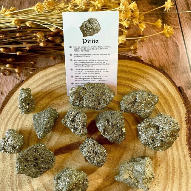 A Pirita, com seu brilho metálico dourado, é conhecida como a pedra da prosperidade e do sucesso.