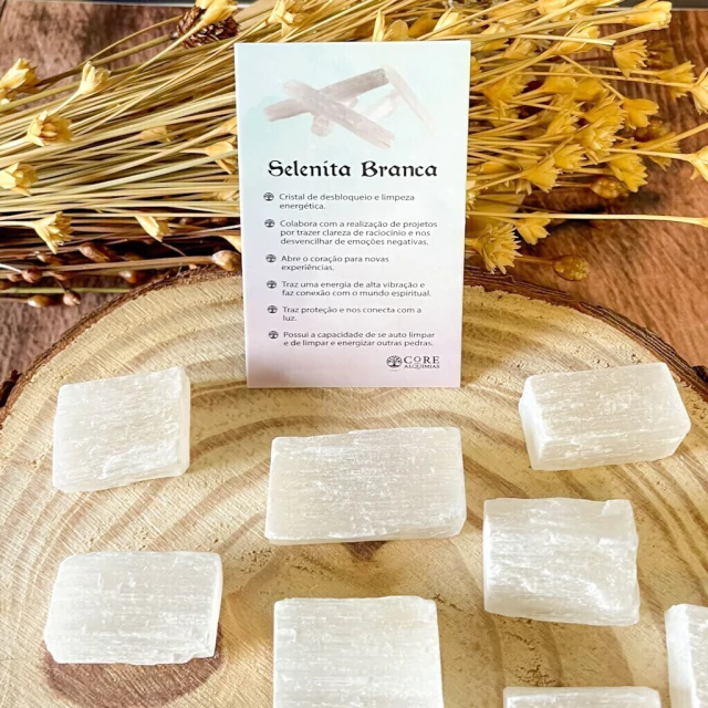 A Selenita Branca ajuda a dissipar energias negativas e a promover um ambiente de serenidade e tranquilidade.